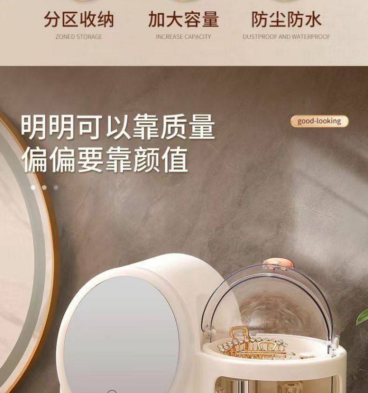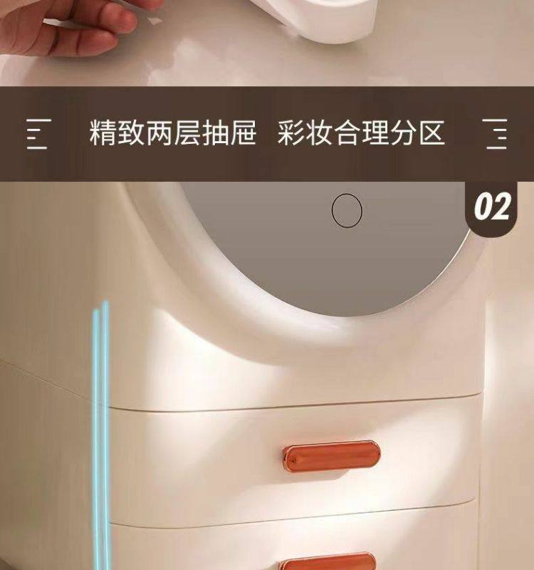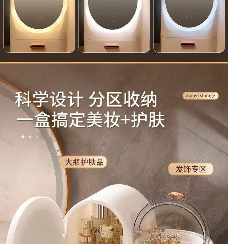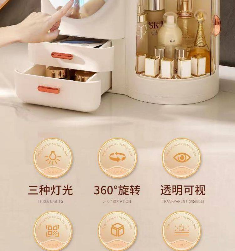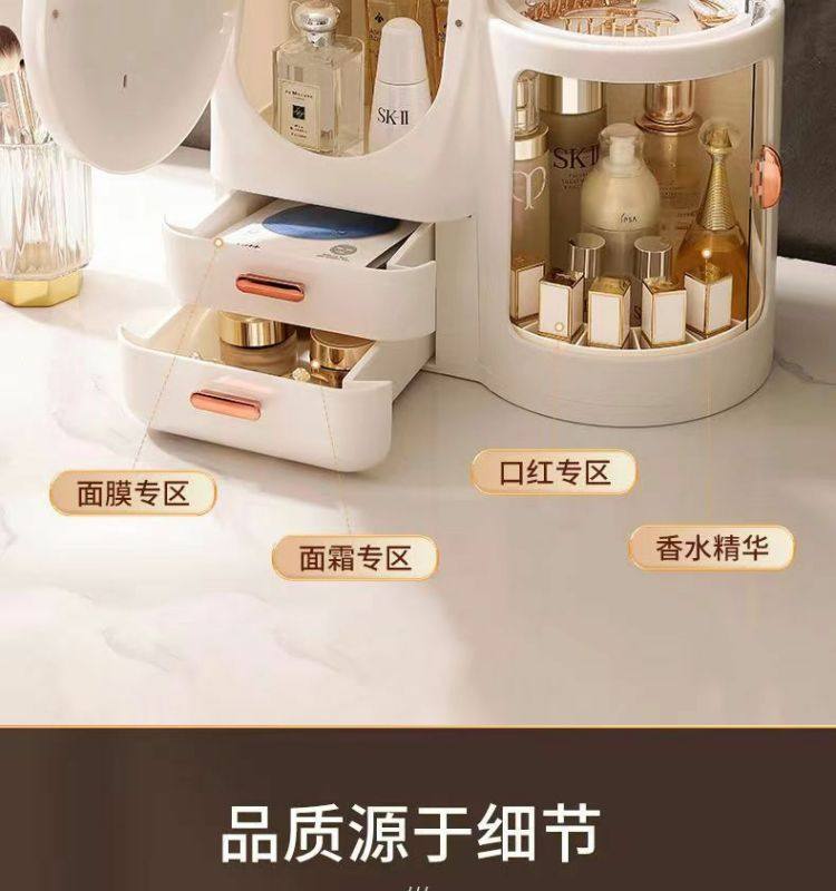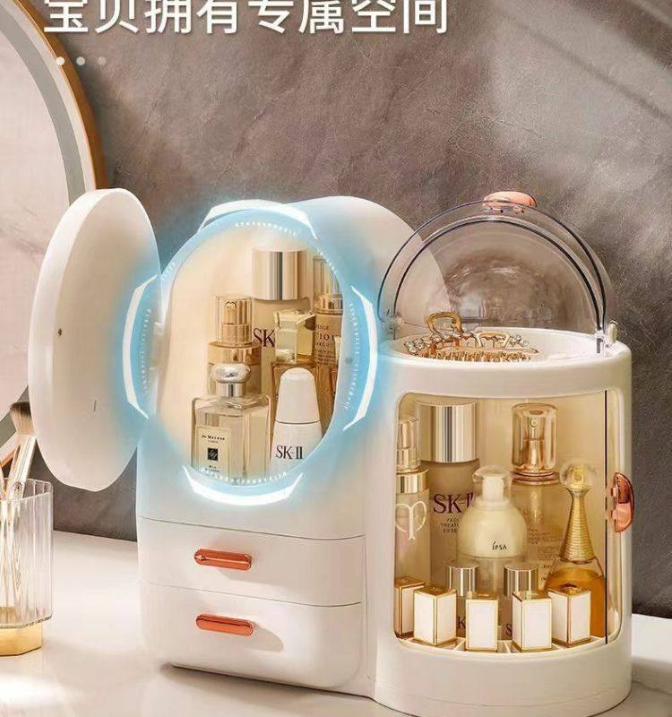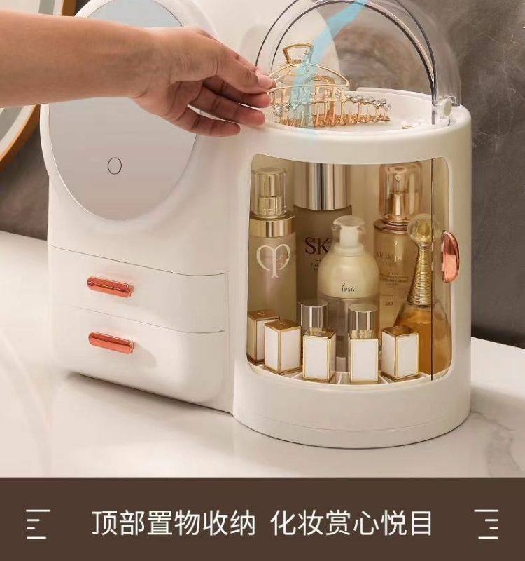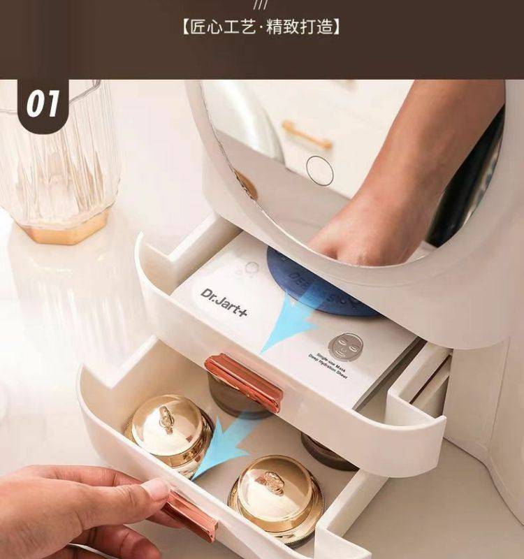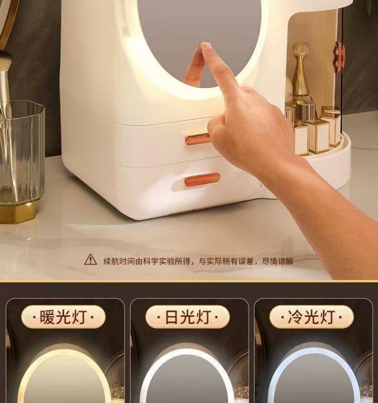 Cosmetics storage box dresser with LED mirror integrated box advanced drawer desktop skin care shelf