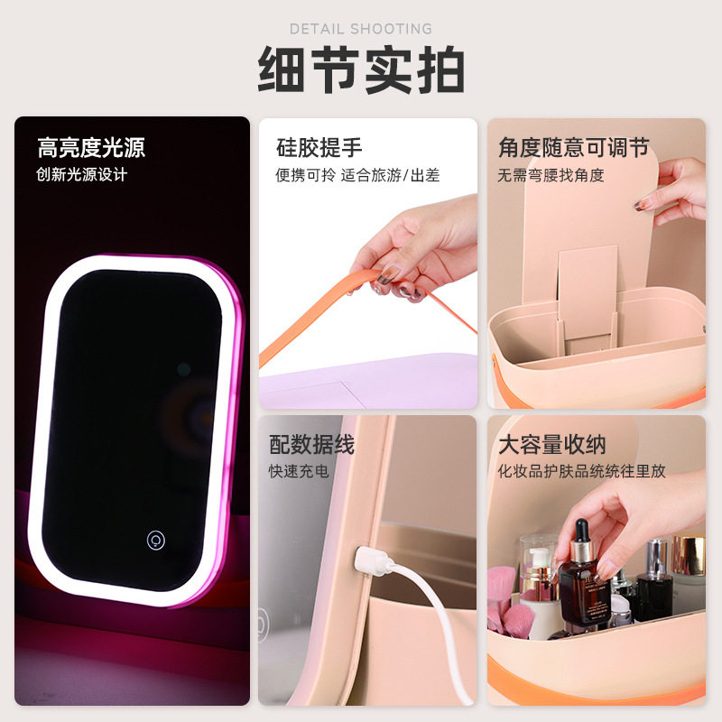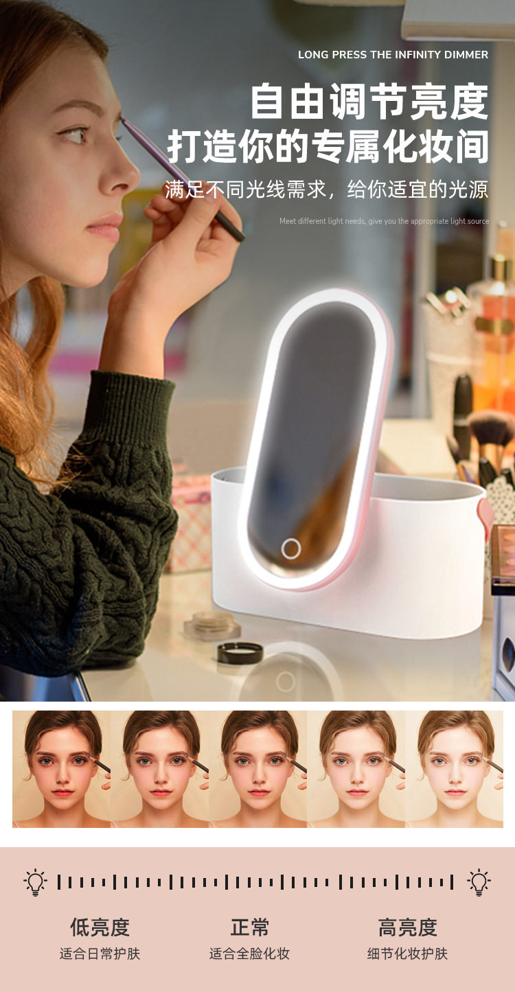 Hot Dressing Mirror Smart Storage LED Makeup Mirror Put on Table Outdoor Travel Beauty Mirror with Light
