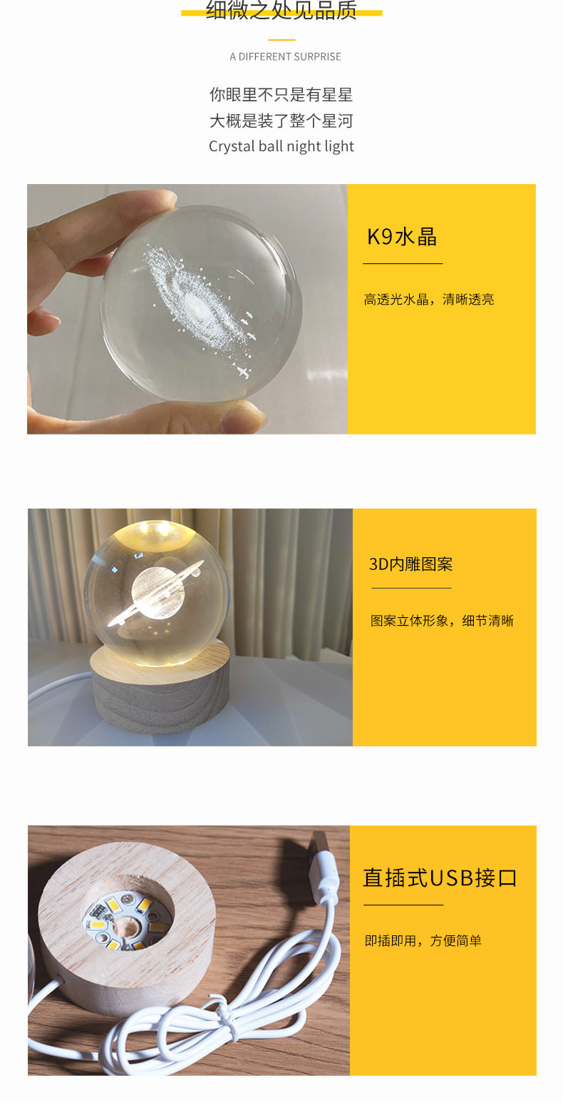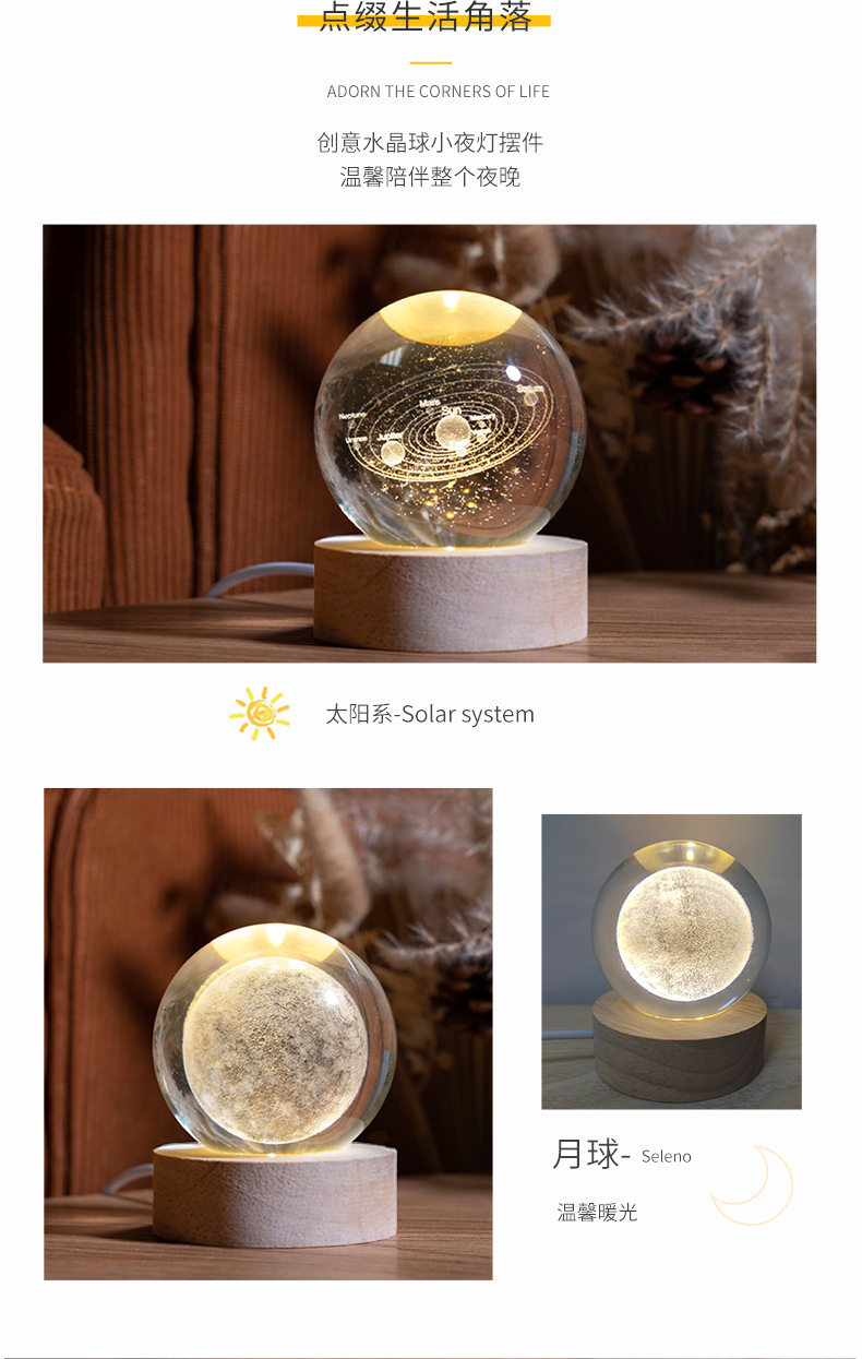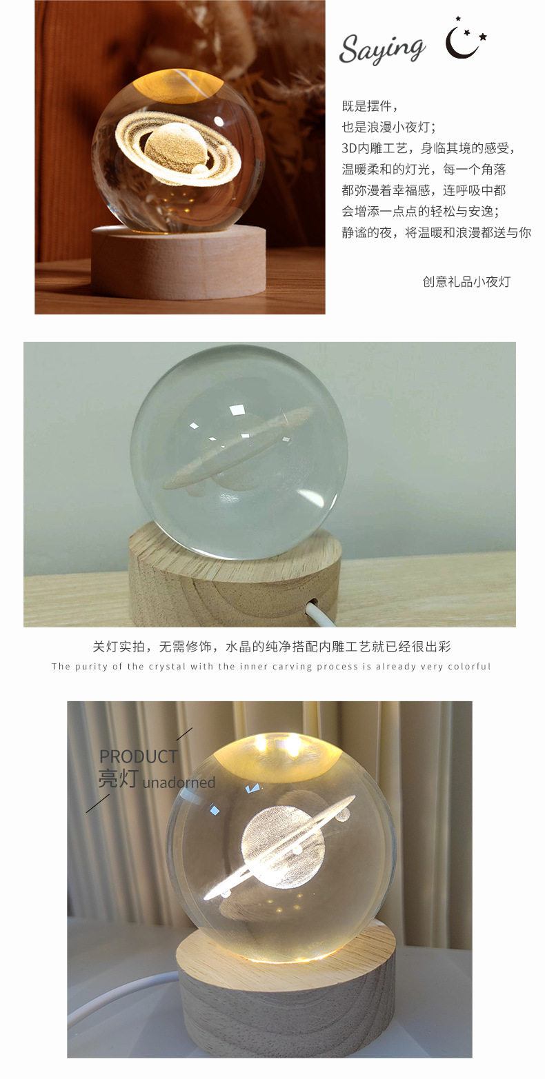 Luminous Night Light Crystal Ball Desktop Ornament Creative Holiday Gift Atmosphere Lamp Romantic Mini Lamp Planet